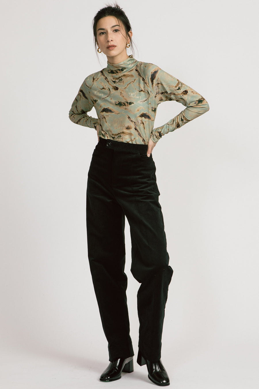 A mock turtleneck with a slim fit. Wear it on its own or as a layering piece, under the Agatha jumpsuit or Deetz romper. Cute with Lydia pant or jeans.